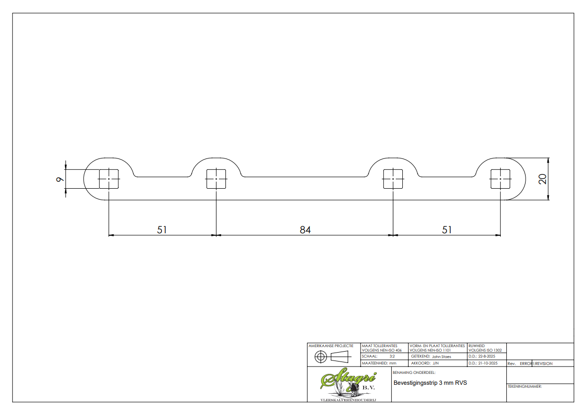 Montageset bevat: 4 rvs strips met 8 rvs slotbouten 8×50 en 8 rvs borgmoeren m8.
